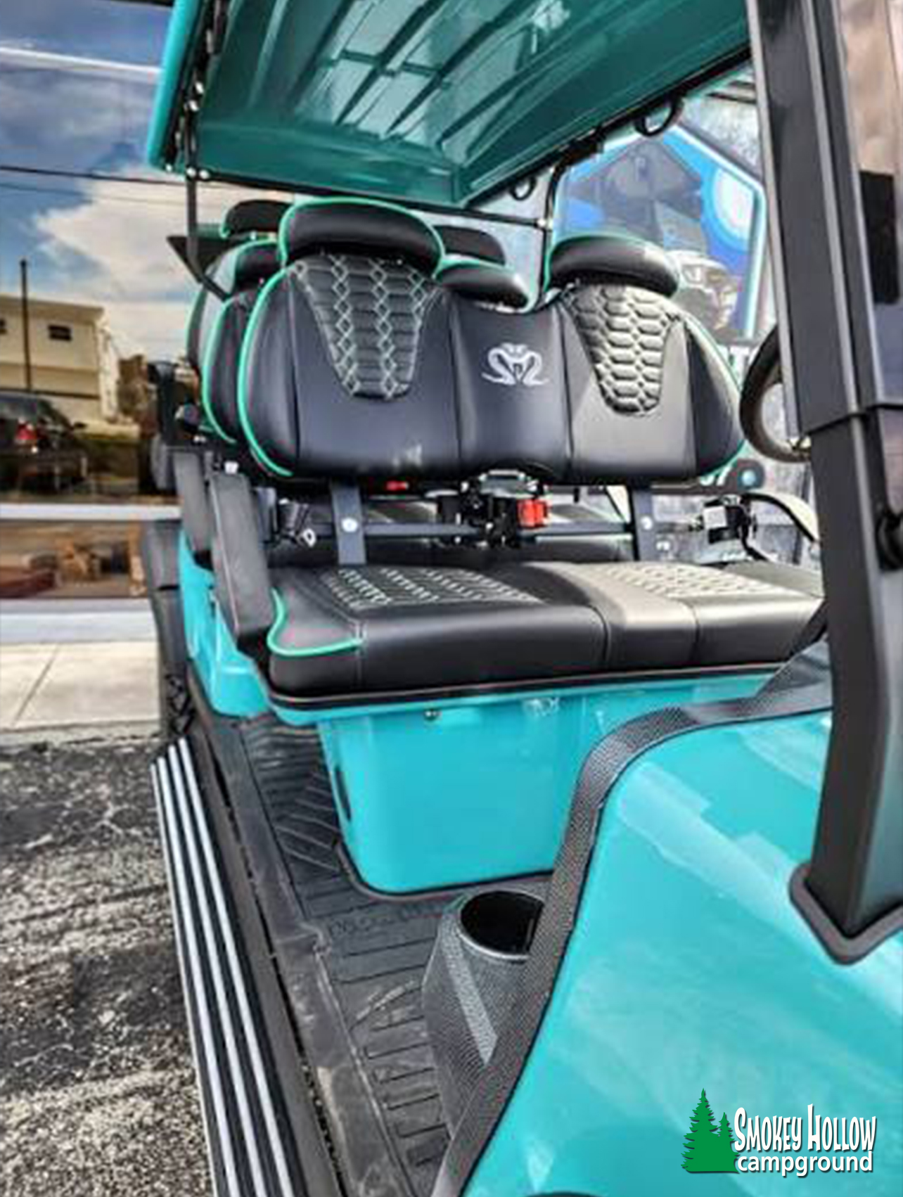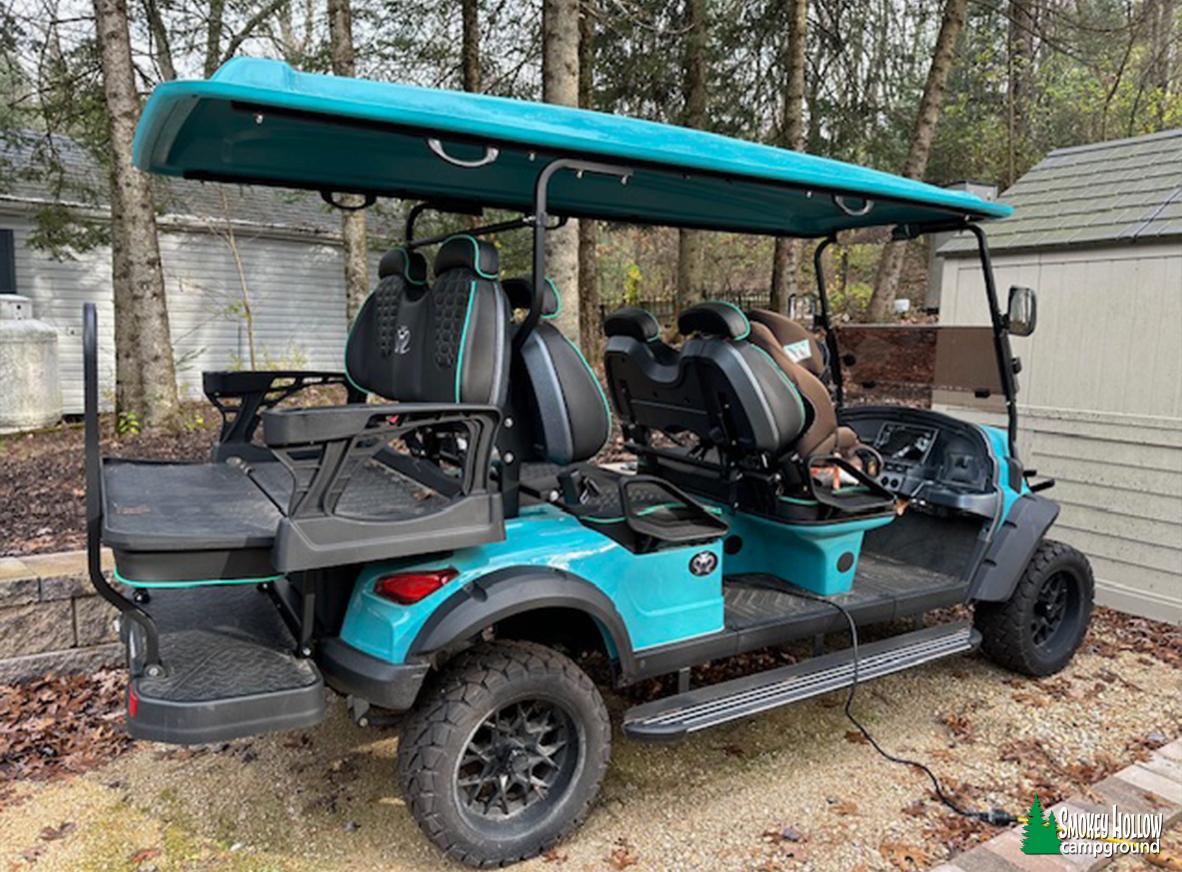 • 2023 Venom EV, teal, 6-seater with lights and premium sound upgrade.