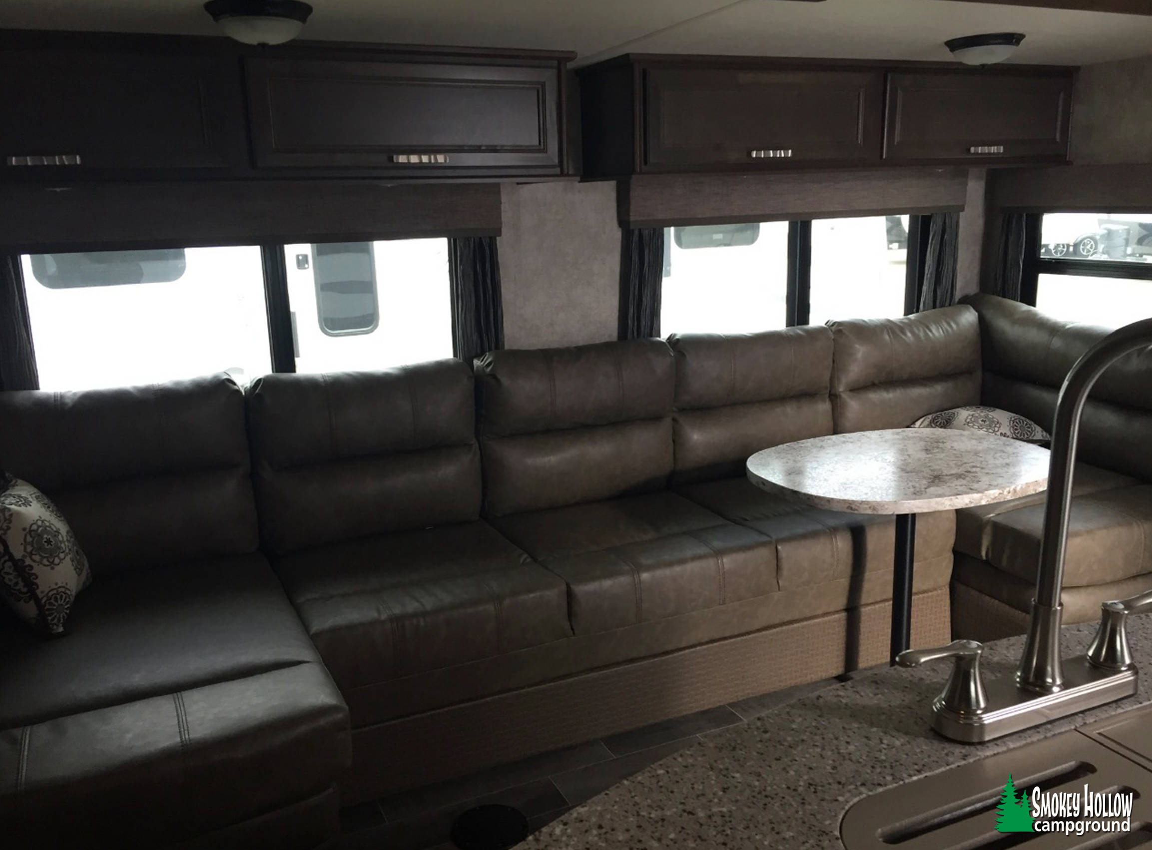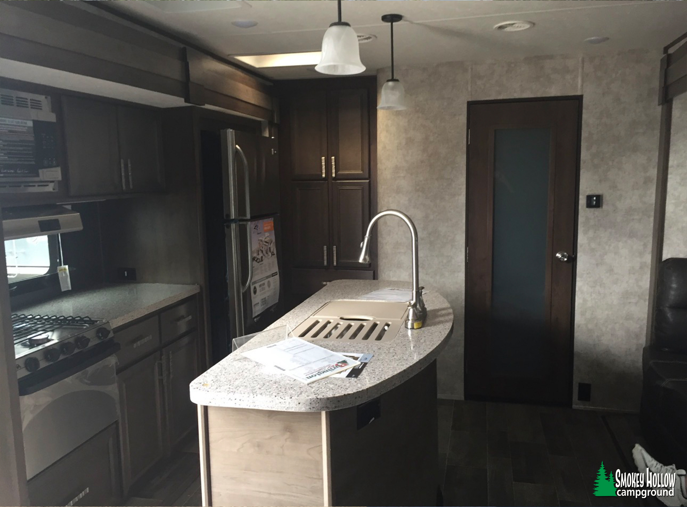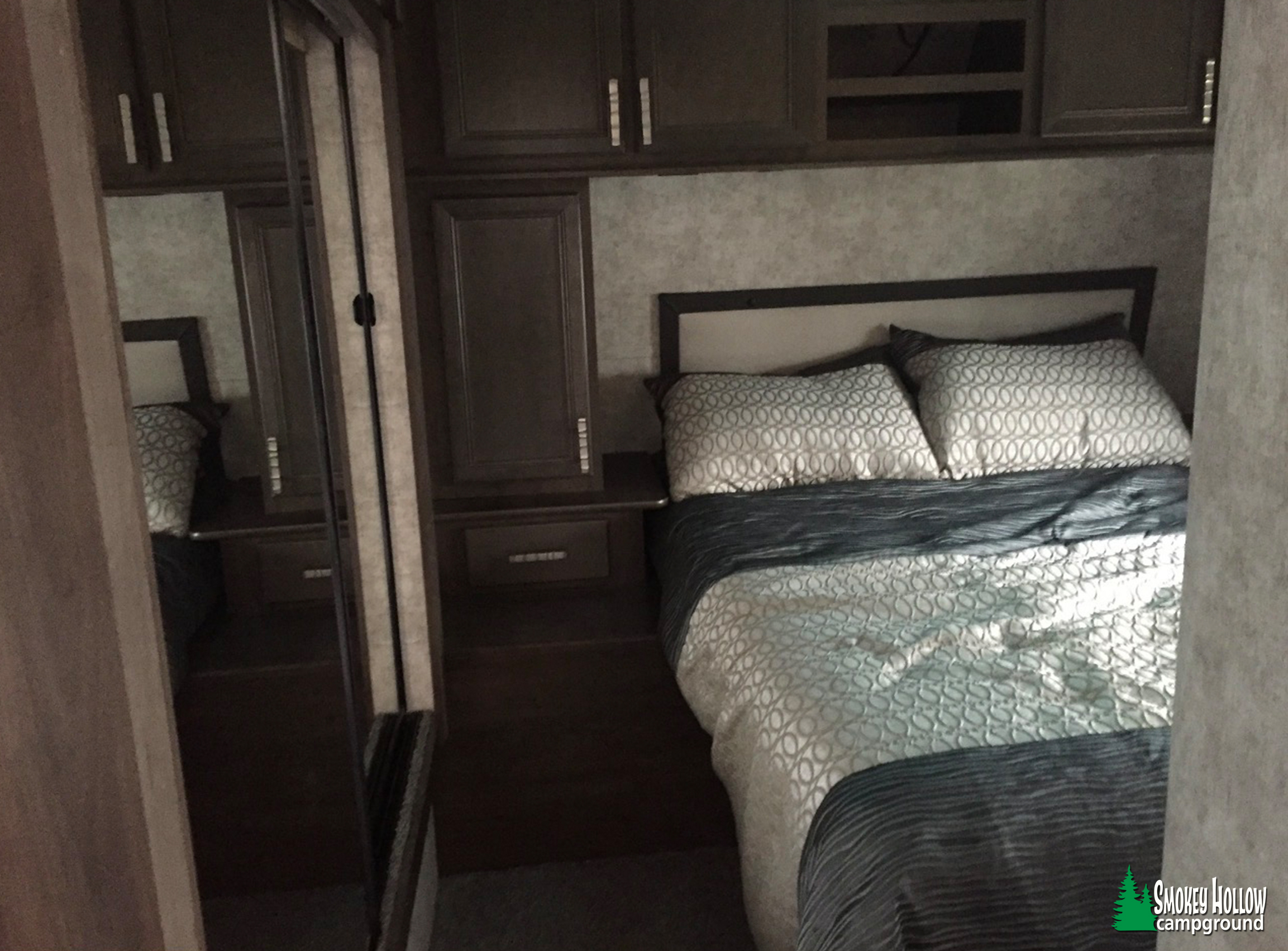 • Comfortable interior with full-size bed in the back room.