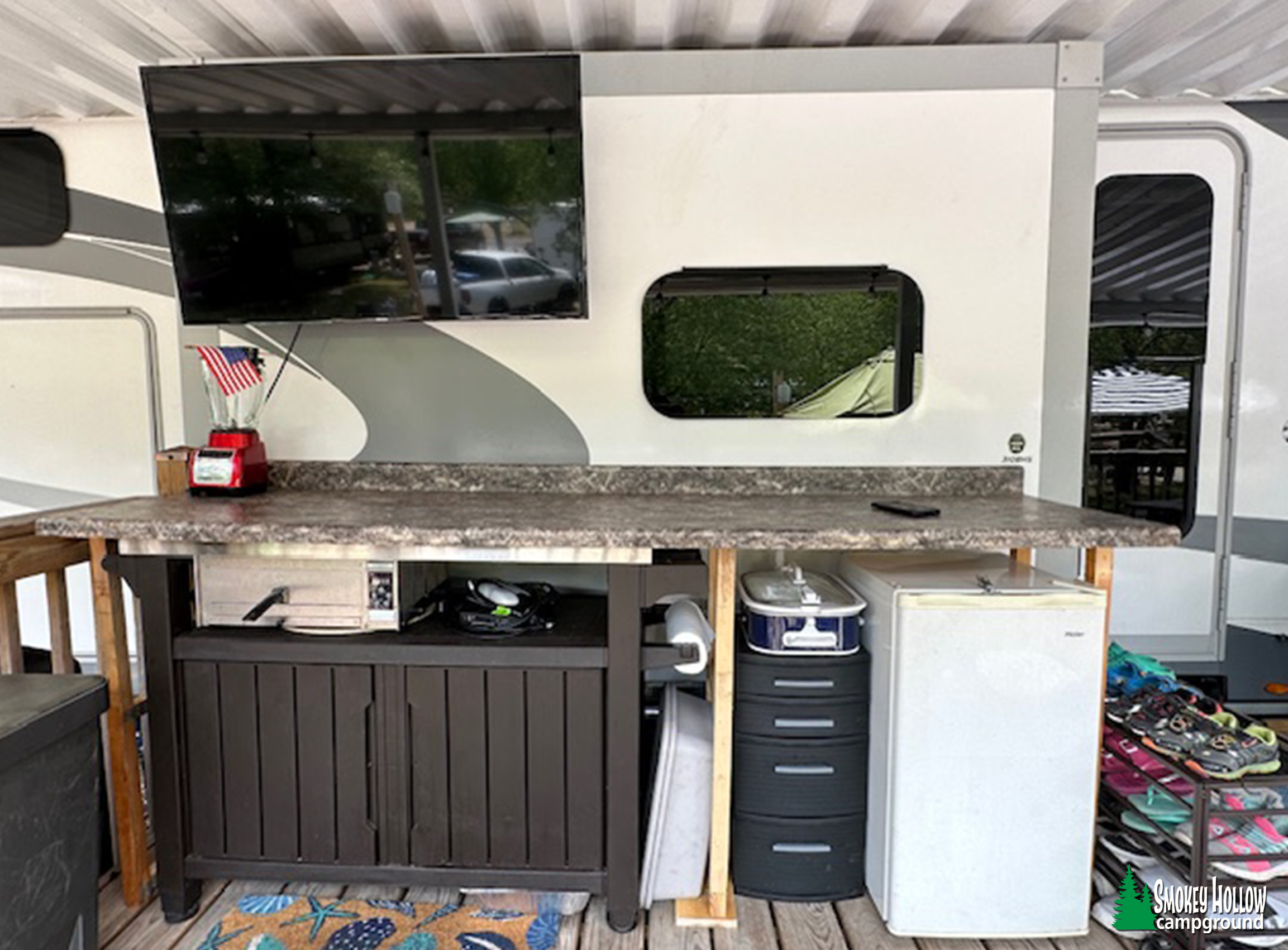 This is more than just a camper – it’s a complete, fully prepared retreat with everything in place for outdoor living, entertaining, and family fun. You won’t find another site like this!