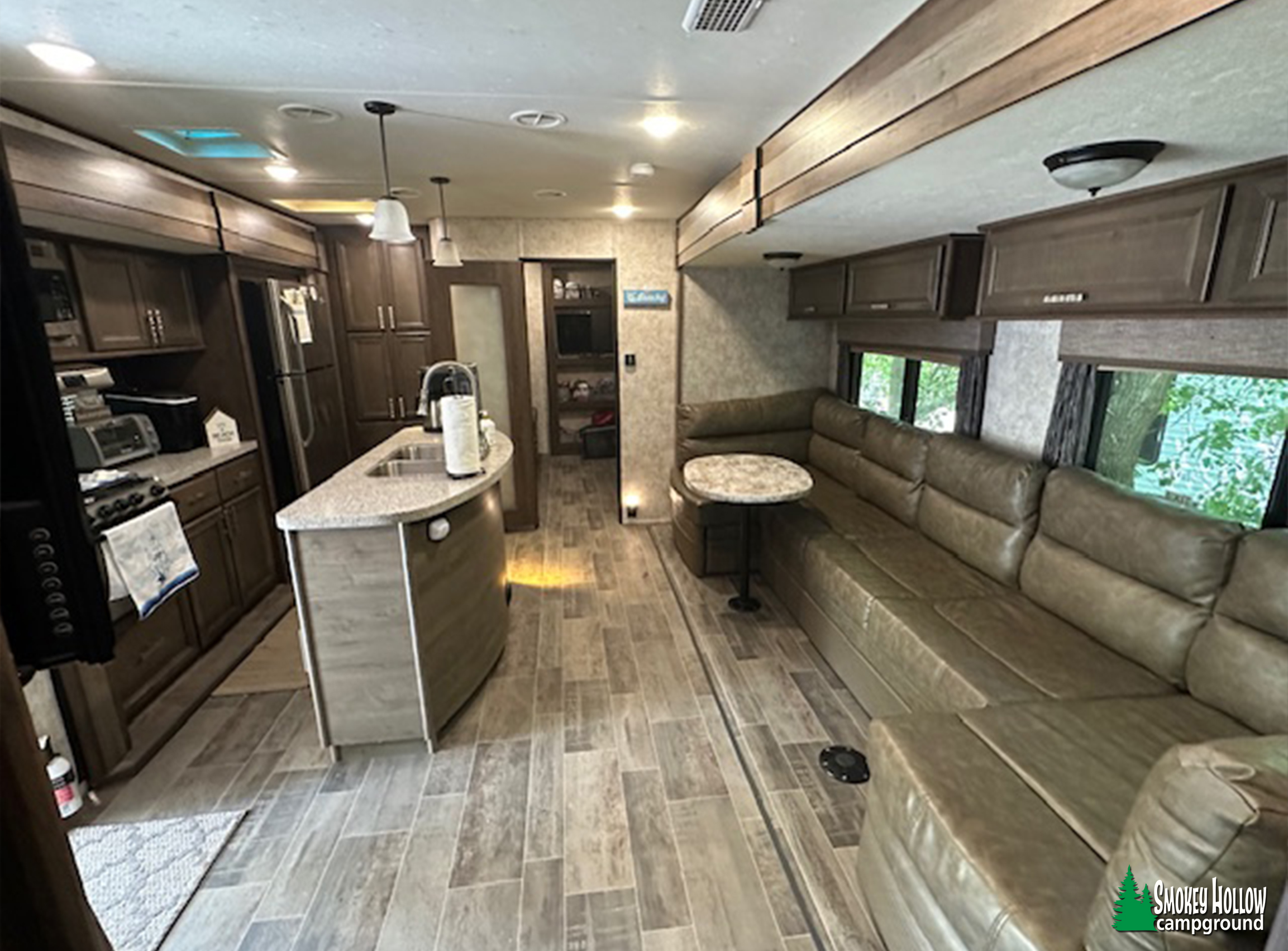 • Sleeps up to 10 people – private bedroom, bunk area, and convertible dinette/sofa.