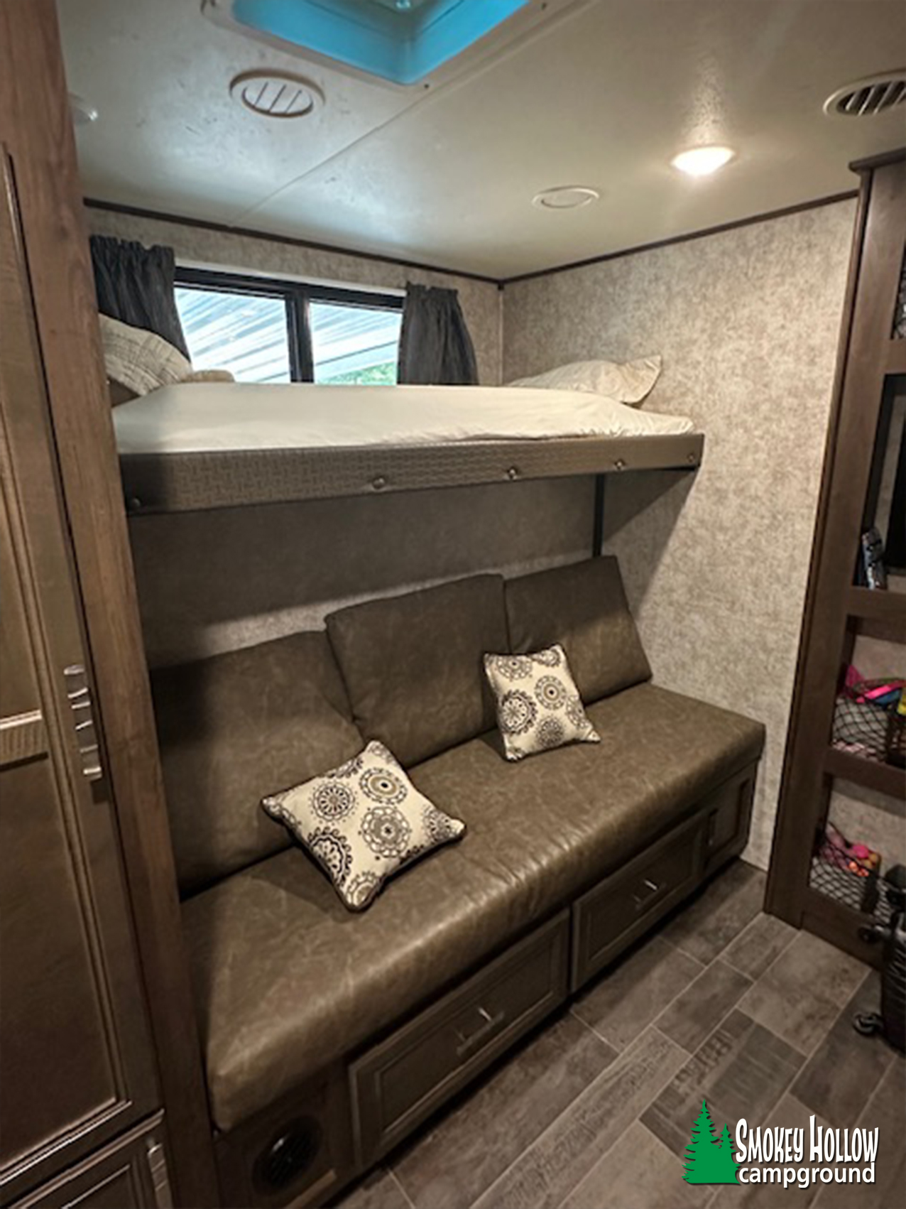 Kids bunk room in rear with TV entertainment,